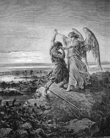 24 И изгнал Адама, и поставил на востоке у сада Едемского Херувима и пламенный меч обращающийся, чтобы охранять путь к дереву жизни.